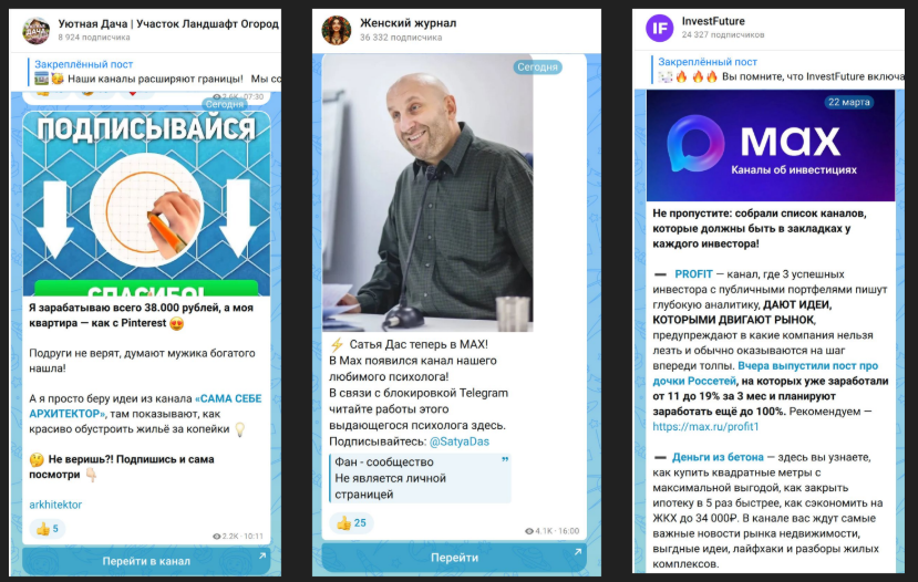 Аудитория специалистов из разных направлений долгие месяцы будет перетекать в Max из других удобных для них платформ. Поэтому пока или закупаемся в очень ограниченном количестве Max-каналов, или идем в альтернативные источники трафика, из которых можно достаточно дешево добывать нужную целевую аудиторию и приводить ее на ваш блог в Max.