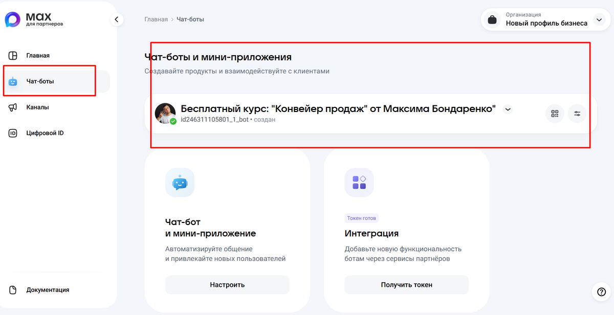 — Создания сервисов для работы внутри Max (чат-бот для постинга,