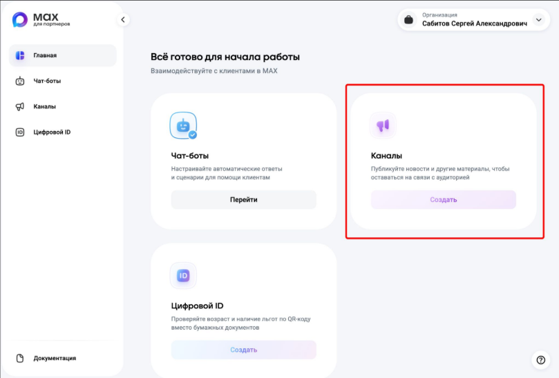 2. Через регистрацию на business.max.ru. Доступно для юрлиц