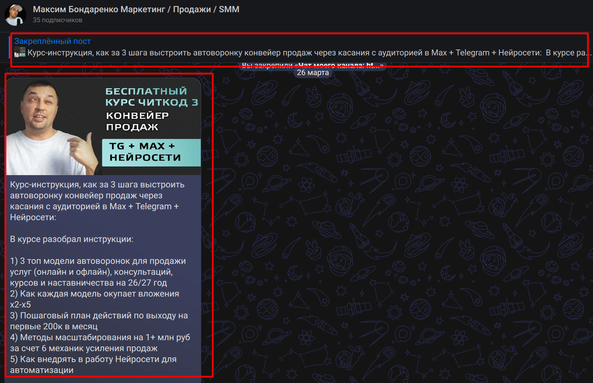 Лид-магнит выдаем или в чат-боте, или в посте Max-канала.