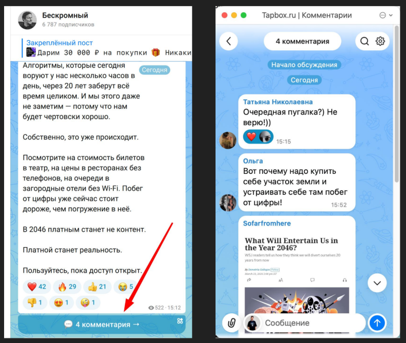 — Оставлять реакции под постами, если это разрешено владельцем канала