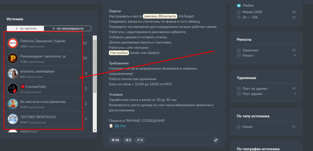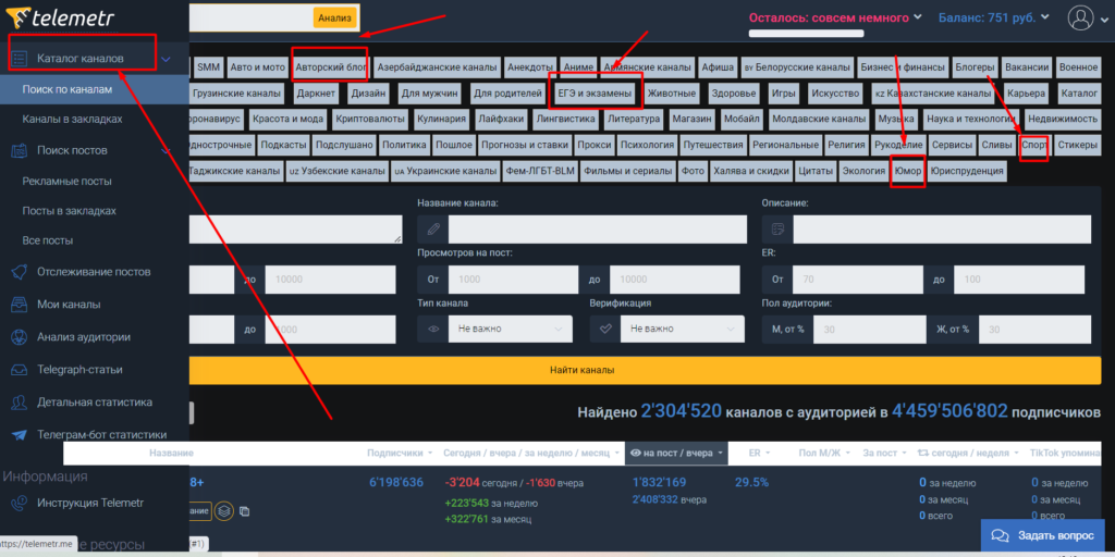 Так мы получаем активные и свежие каналы в нужной категории для дальнейшего отсева и отбора каналов под ваши цели.