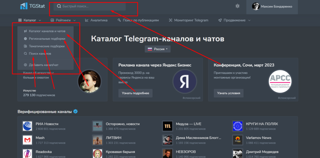 Поиск аудитории и каналов в Телеграм через TGstat: