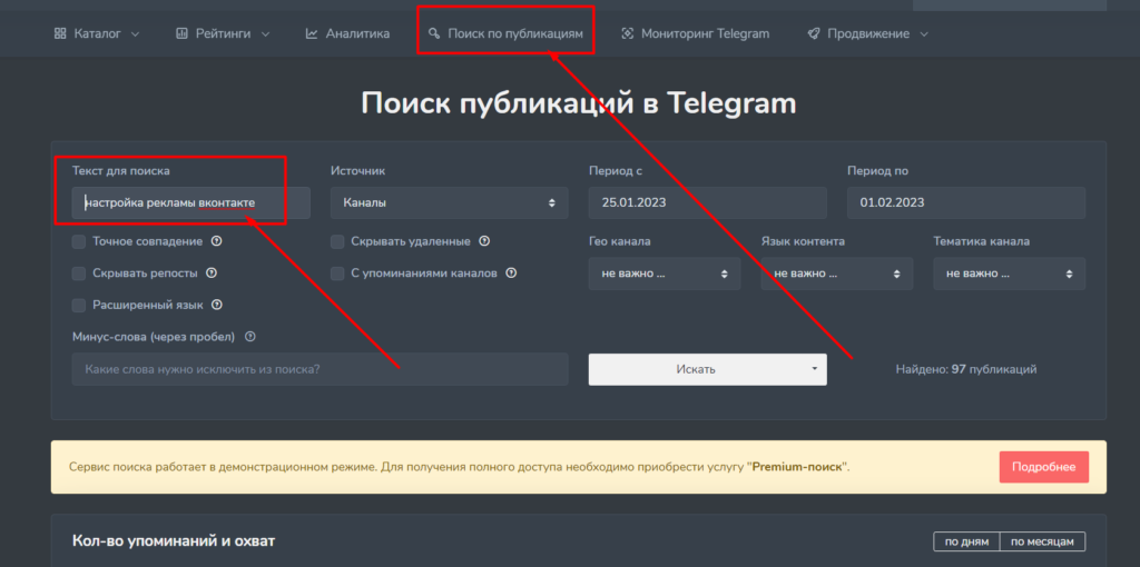 Как искать аудиторию в Телеграм в сервисе Telemetr: